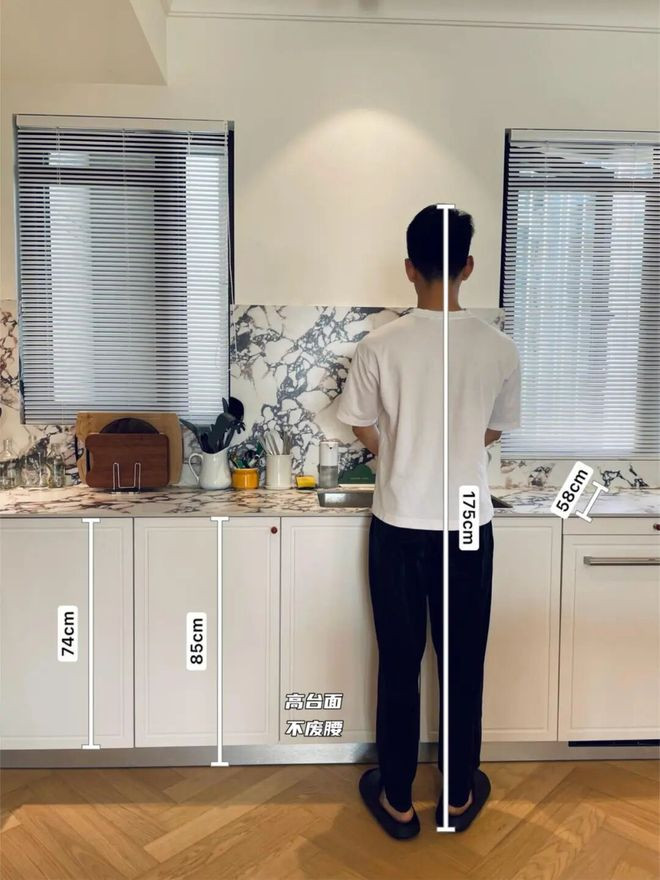 六、小厨房作念高下台 说完凉霸,再来说说厨房里的另一个东谈主性化诡计——橱柜高下台,也即是单独将水槽区举高。