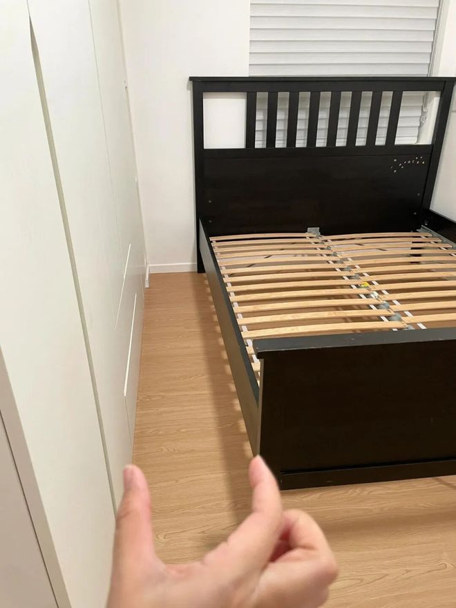 网友@喝奶茶脸麻:床尾太窄千万不要诡计满墙衣柜,本以为过谈有42cm能对付,住进去才发现哪哪都不安逸,而且悉数房间显得格外压抑。