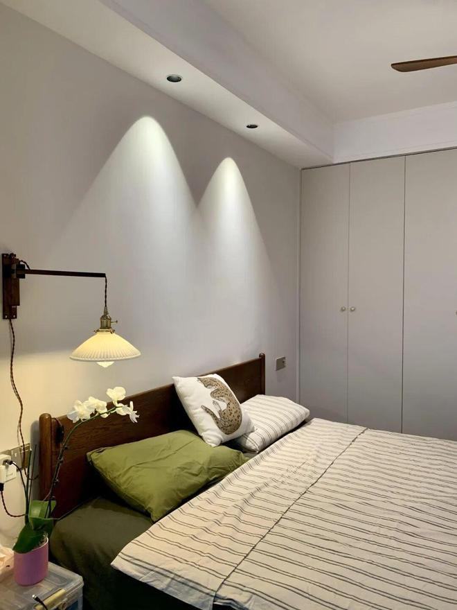 四、床头装置小射灯 不少东谈主为了普及卧室的氛围感,都会在床头上头装置几个射灯,并认为这个诡计十分合理、高档。