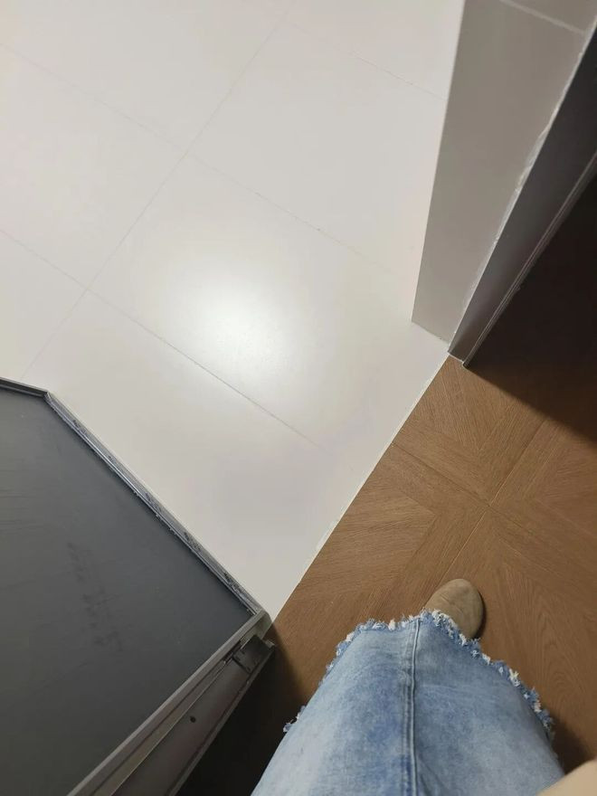 提议:通铺客厅地砖时往卫生间多蔓延2cm,结束无缝拼接;简略用专用收口条处理拼接缝。