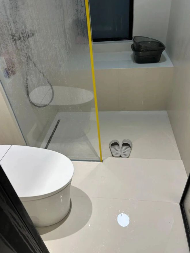 可确实住进去就会发现,半块玻璃隔灭亡本就不挡水。每次洗完澡,干区大地都会溅上水。