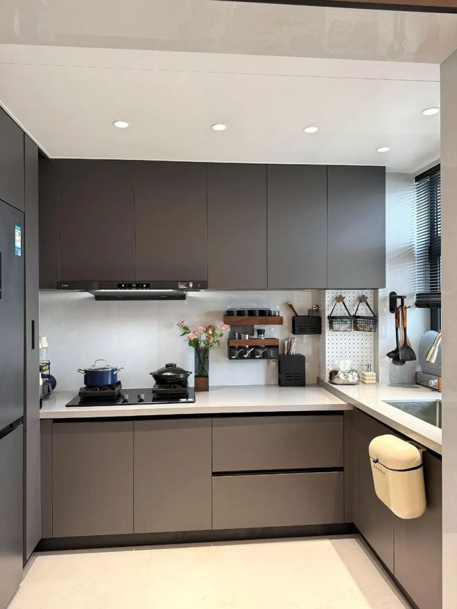 提议:小厨房就作念别高下台了,否则就会将本就未几台面空间分离隔。不错研究将橱柜长入作念到85cm高度。