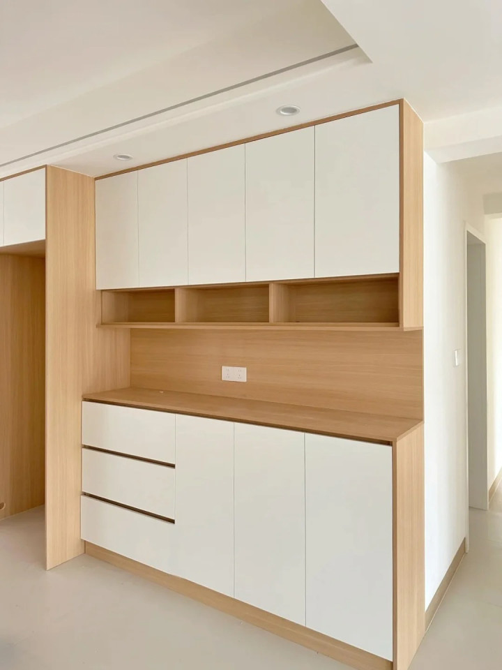 浅木色 + 白色是永不外时的组合,浅木色打底温润,白色门板提亮空间。当今广东的天气相比湿润,ag真人app官方网站下载淡色系也能让家里嗅觉更干爽。让空间显得更温馨亮堂。