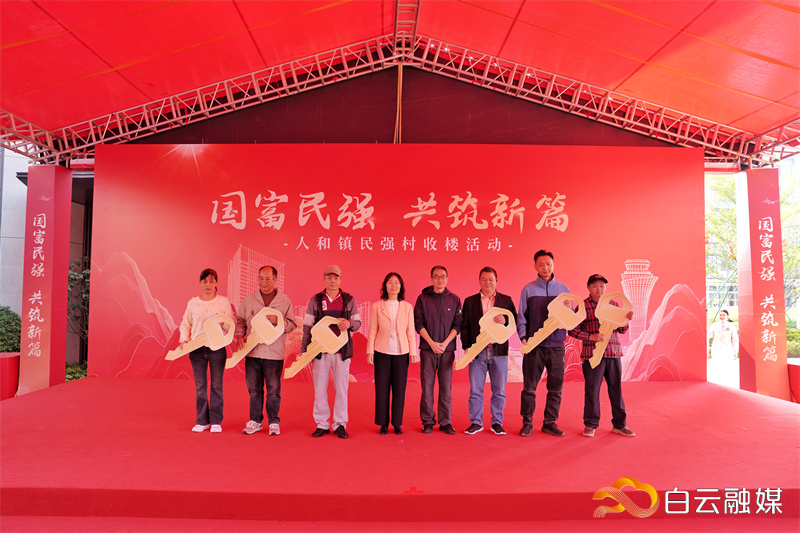 “海涵回家!”1月18日,白云区东说念主和镇机场三期南边安置区云溪花坛地块再迎喜事,民强村整村搬迁收楼当作在此举行,1280余户村民拿到新房钥匙,开启幸福生计新篇章。白云区副区长刘导平插足当作。