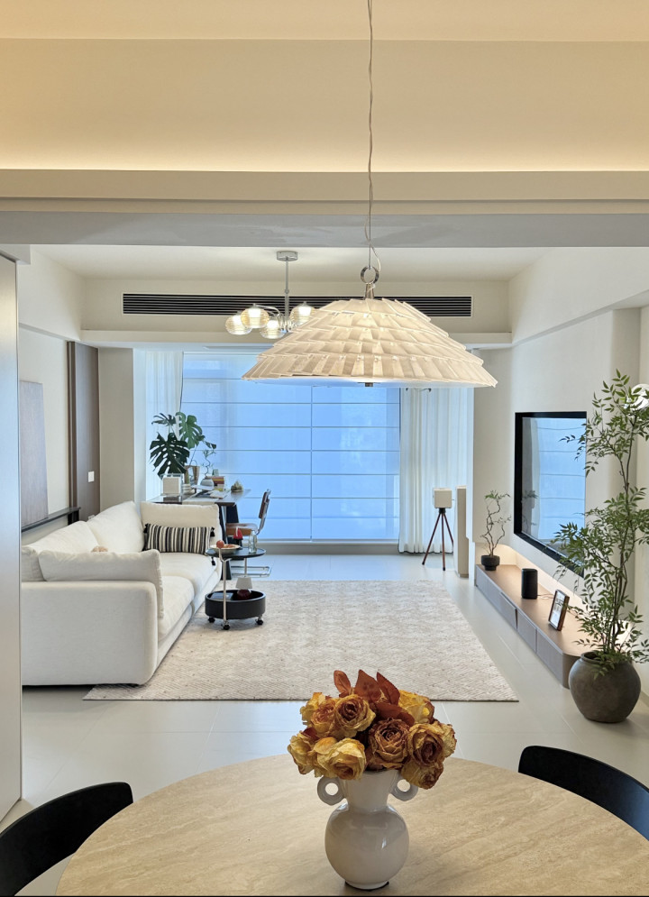 业主很明晰复杂的吊顶不仅会压低层高还会显得压抑,理智的领受了只作念了一圈双眼皮吊顶,再搭配渺小的吊灯,在不压低层高的同期,空间感也赢得了提高。