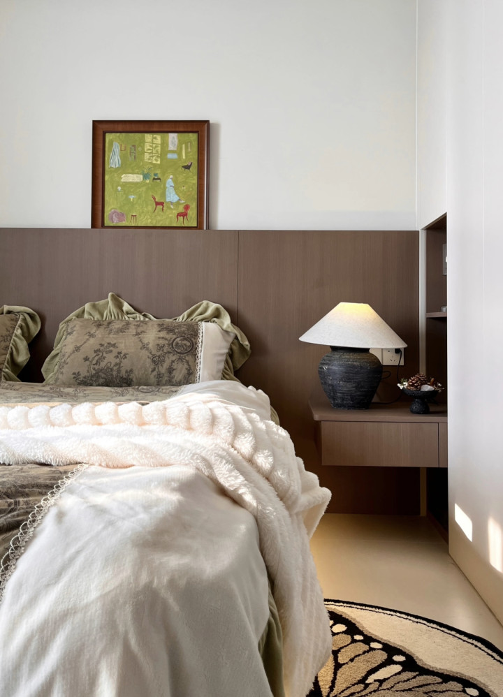 拒却过度庇荫的卧室,主打一个肤浅排场且耐看的卧室。白墙+木质护墙板组成干净画布,悬浮式床体秘要腾出呼吸感,再搭配几件尽心挑选的单品当作点缀,统共这个词空间片刻就有了温度。