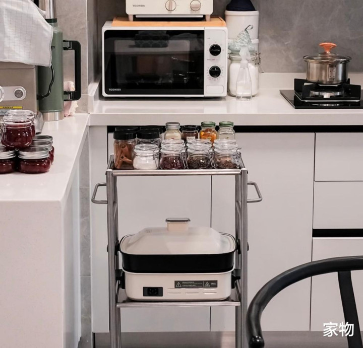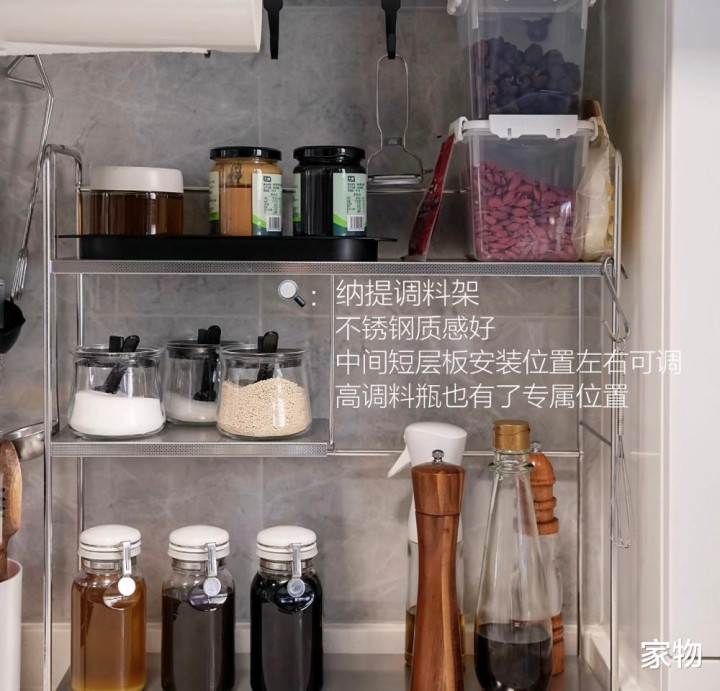 我是果真很心爱各式不锈钢的厨房用品,不仅看起来金属光泽裕如,卓绝高等,同期也浅陋清洁收拾。 这组调料架,更是能将我刚才说的大部分瓶瓶罐罐都妥善收纳其中,中间的层板更是丰富了收纳端倪,用起来很顺遂。 十、不锈钢小推车