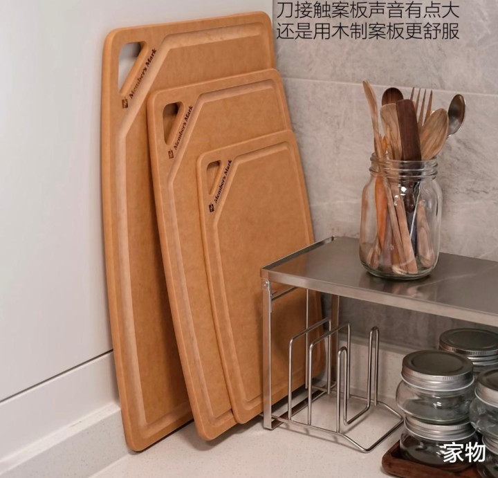 卓绝经典的一套案板,大中小三个尺寸,差别用来切菜切肉切熟食,因为支配带有导流槽,即便食材有水分,也无谓惦念流得案板上到处都是。 但嗅觉它照旧稍许薄了一些,况兼板子比较脆,导致切菜声息较大,但总体来说恢恢有余。 七、宜家玻璃调料瓶
