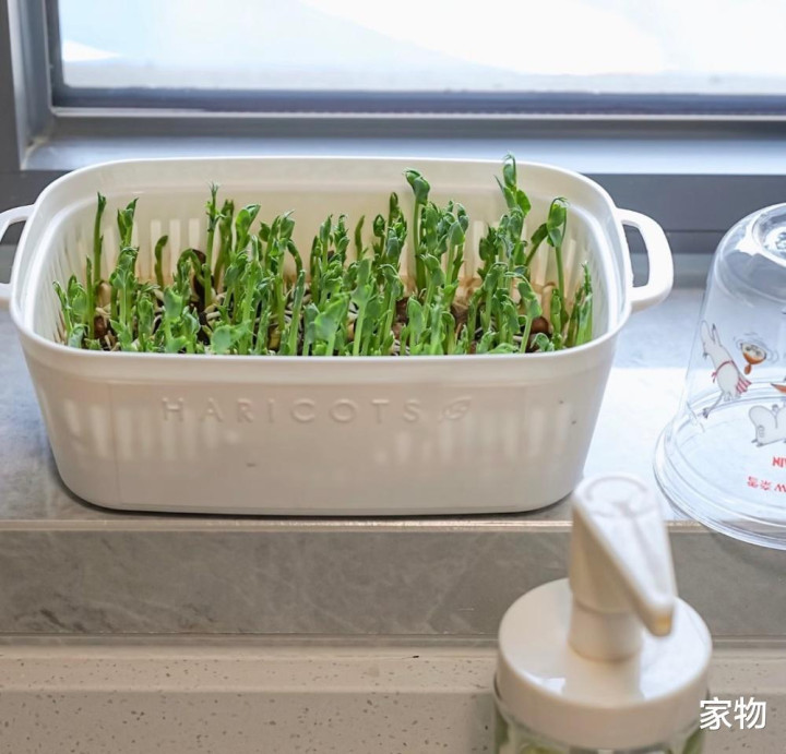 之前有个因为尺寸较小而闲置的双层沥水洗菜篮,目下发现当成养芽菜粗略豌豆苗的小盆太合适了,双层的野心不会太闷水,又浅陋拿起来“采摘”,关节是小小的盆体,放在窗台上,刚好合适,绝了。 四、霜山沥水盆套装