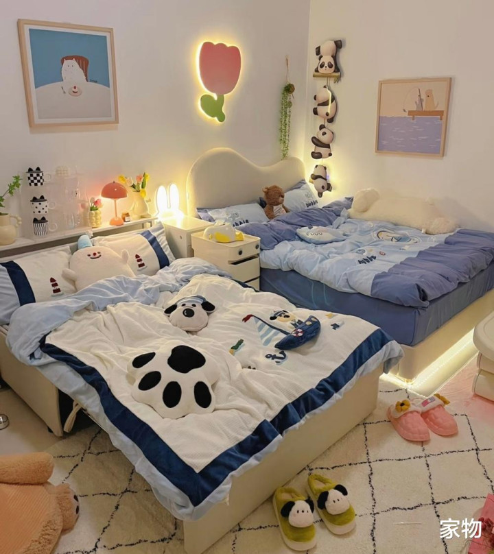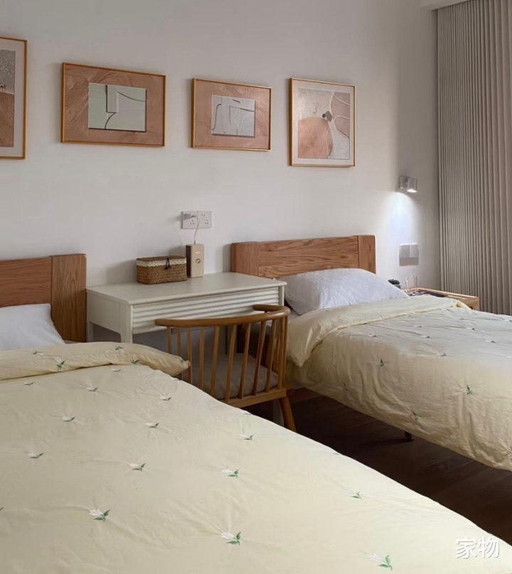 虽然,若不思大费周章作念终止、转换房间布局的话,也可以简便加一谈布帘滑轨,将卧室一分为二,罢了更多的功能,雷同的布帘分隔缱绻,更是可以蔓延到家里其他所在,打造出既纯真使用,又能保证鸿沟感的装修。 二、软装纯真搭配 ①卧室放双床,大床变标间