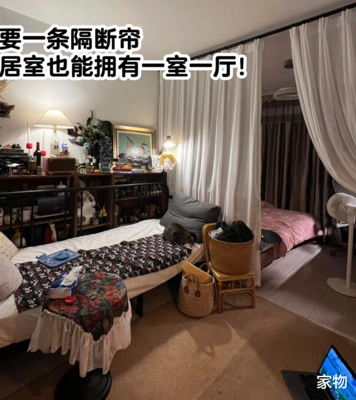 而如果有一间20㎡掌握甚而更大面积的主卧室,其实饱和可以鉴戒栈房的套间式装修,睡床位置不变,但可以留出版斋粗略小沙发的空间,甚而用软硬终止进行简便分隔,一间房子领有两种功能,更为实用。 ③布帘分隔空间,可分可合