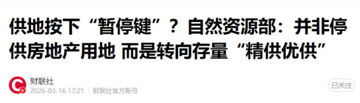乍一看,确乎是新增开发用地不给商品房了,供给不就少了,但官方早也曾预判到众人简便毁坏的反映。 是以在3月16日的新闻发布会上,开发诈欺司司长孔维东切身出来解说了,这不等于不供应房地产用地,而是要要点用好存量资源“精供优供”,因城施策主理好供地的节律和时序。